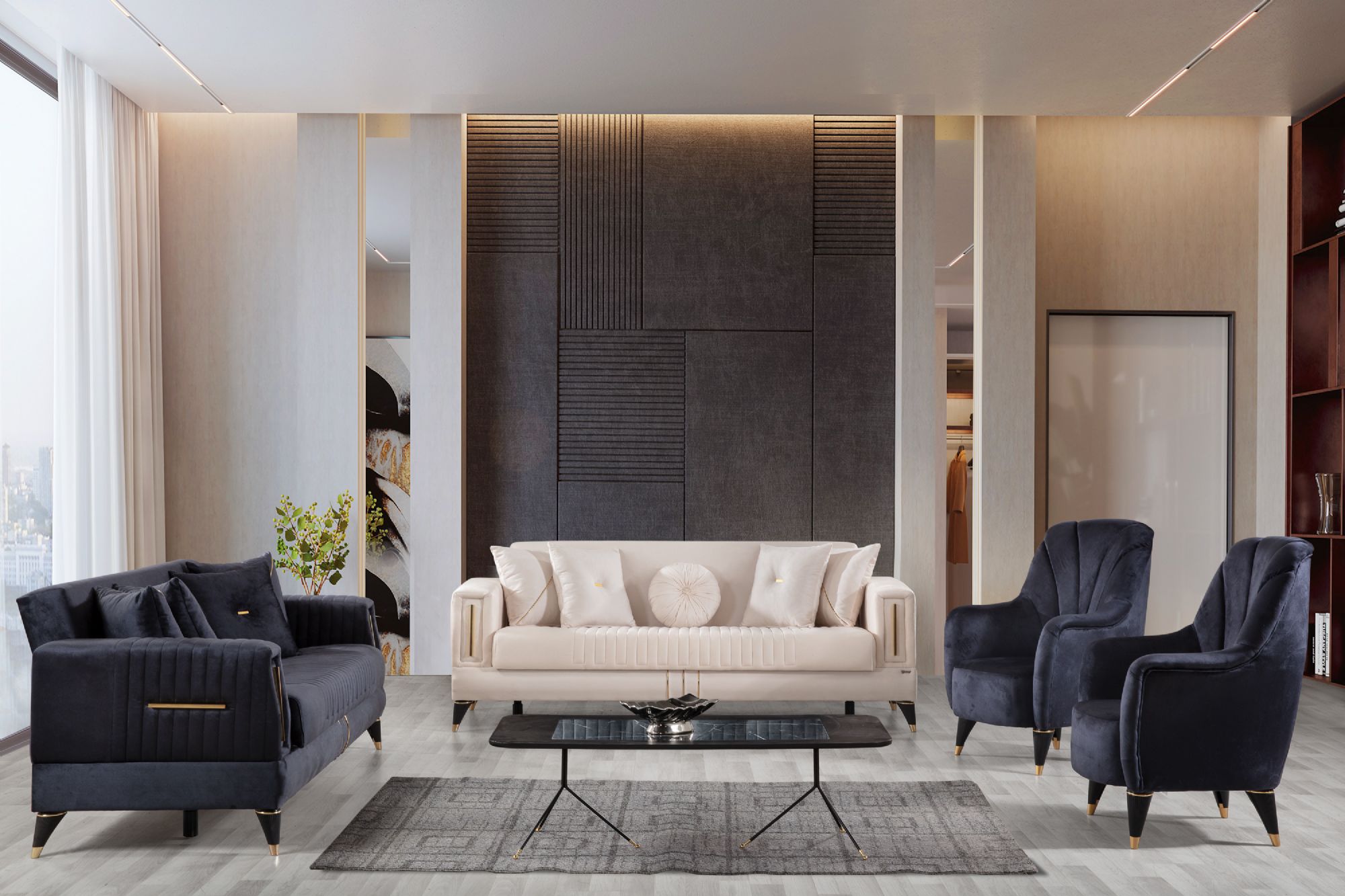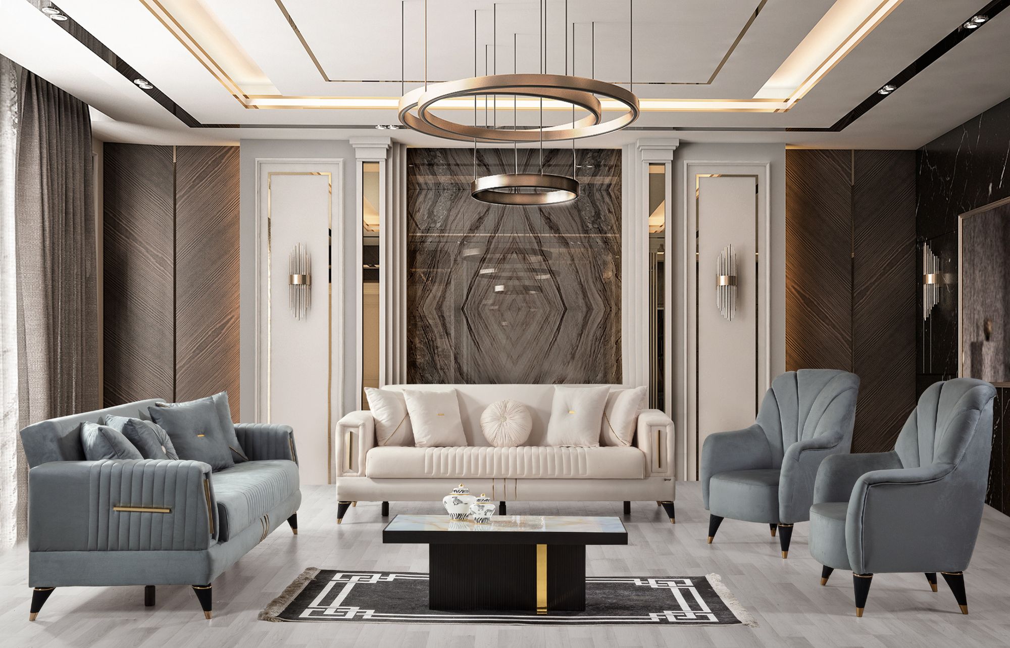 Perge Kanepe TakımıKlasik Dokunuşların Modern Buluşması, Yaşam Alanınızın Karakteri.Perge Kanepe Takımı ile yaşam alanınıza göz alıcı bir kontrast ve sofistike bir atmosfer katın, her anınızı sanatsal bir rahatlıkla doldurun.Perge Kanepe Takımı, bej veya krem tonlarındaki ana kanepe ile koyu gri veya lacivert berjerlerin dinamik uyumuyla mekânınızda güçlü bir ifade oluşturur. Kanepenin geniş kolçakları, zarif pileli detaylarıyla tasarıma özel bir dokunuş katarken, takımın bütününe yayılmış ahşap detaylar modern bir sıcaklık sunar. Berjerler ise yüksek, kavisli sırtları ve kısa, konik ahşap ayaklarıyla dikkat çekici bir silüet sergiler. Perge Kanepe Takımı, sadece estetik bir görünüm sunmakla kalmaz, aynı zamanda sunduğu rahatlıkla yaşam alanınızı çok yönlü bir sanat galerisine dönüştürür.