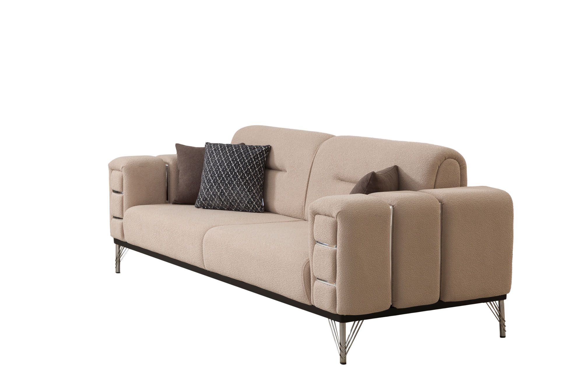 Bentley KoltukMekânınızın İmzası, Stilinizin Güçlü DuruşuBentley Koltuk ile yaşam alanınıza mimari bir çizgi ve göz alıcı bir parlaklık katın, her anınızı size özel bir stil bildirisine dönüştürün.Bentley Koltuk, cesur hatları ve çarpıcı detaylarıyla mekânınızda güçlü bir ifade yaratır. Koyu kahve ve açık bej gibi tonlarda sunulan kumaşıyla, odanıza anında sofistike bir atmosfer katar. Koltuğun en belirgin özelliği, yan kısımlarındaki dikey çizgili paneller ve bunları süsleyen üç yatay metal çubuktur; bu detaylar tasarıma endüstriyel bir şıklık ekler. İnce, metal, açılı ayaklar, bu modern yapıyı zarifçe tamamlar. Bentley Koltuk, sadece bir oturma alanı değil, aynı zamanda odanızın karakterini belirleyecek bir sanat eseridir.
