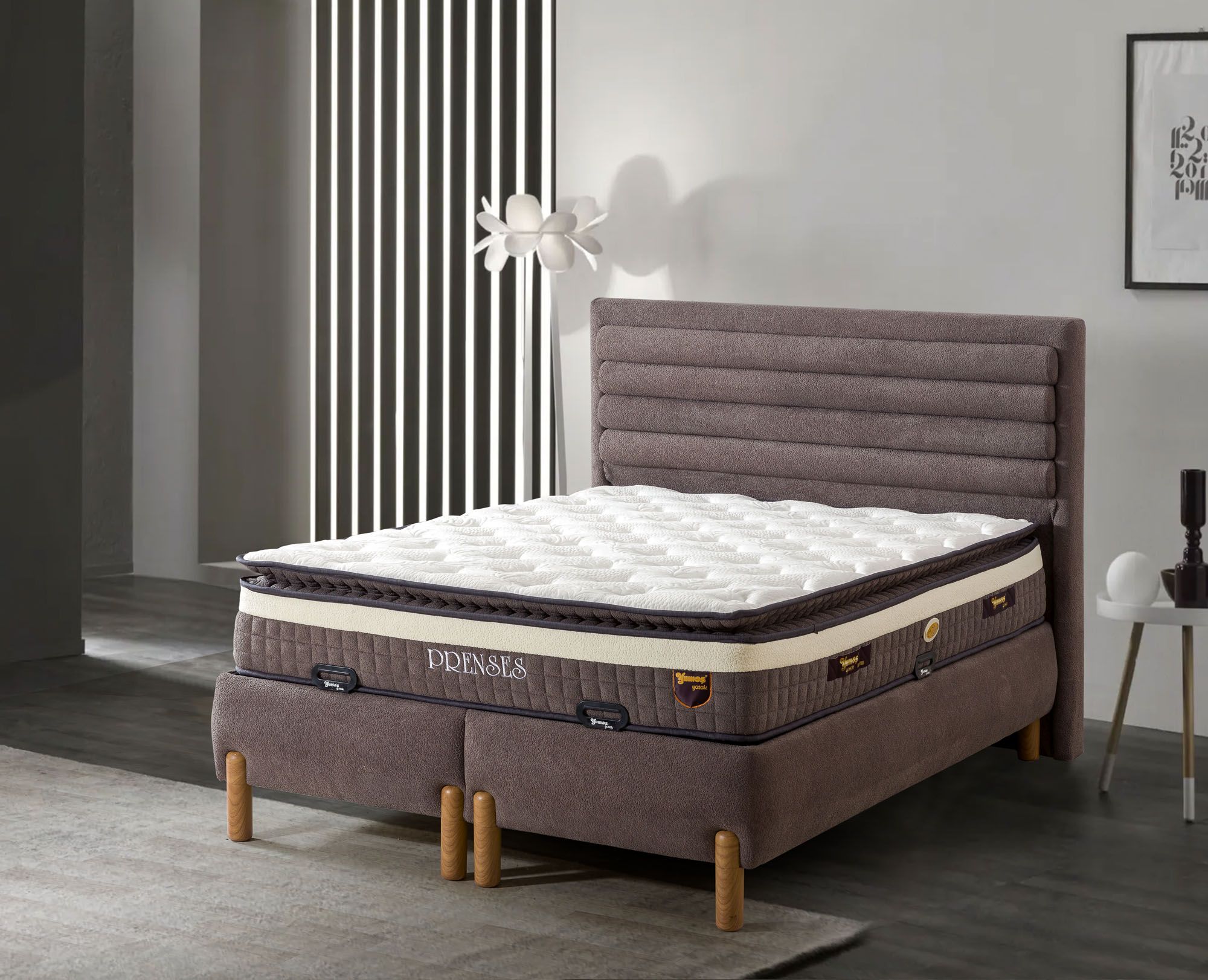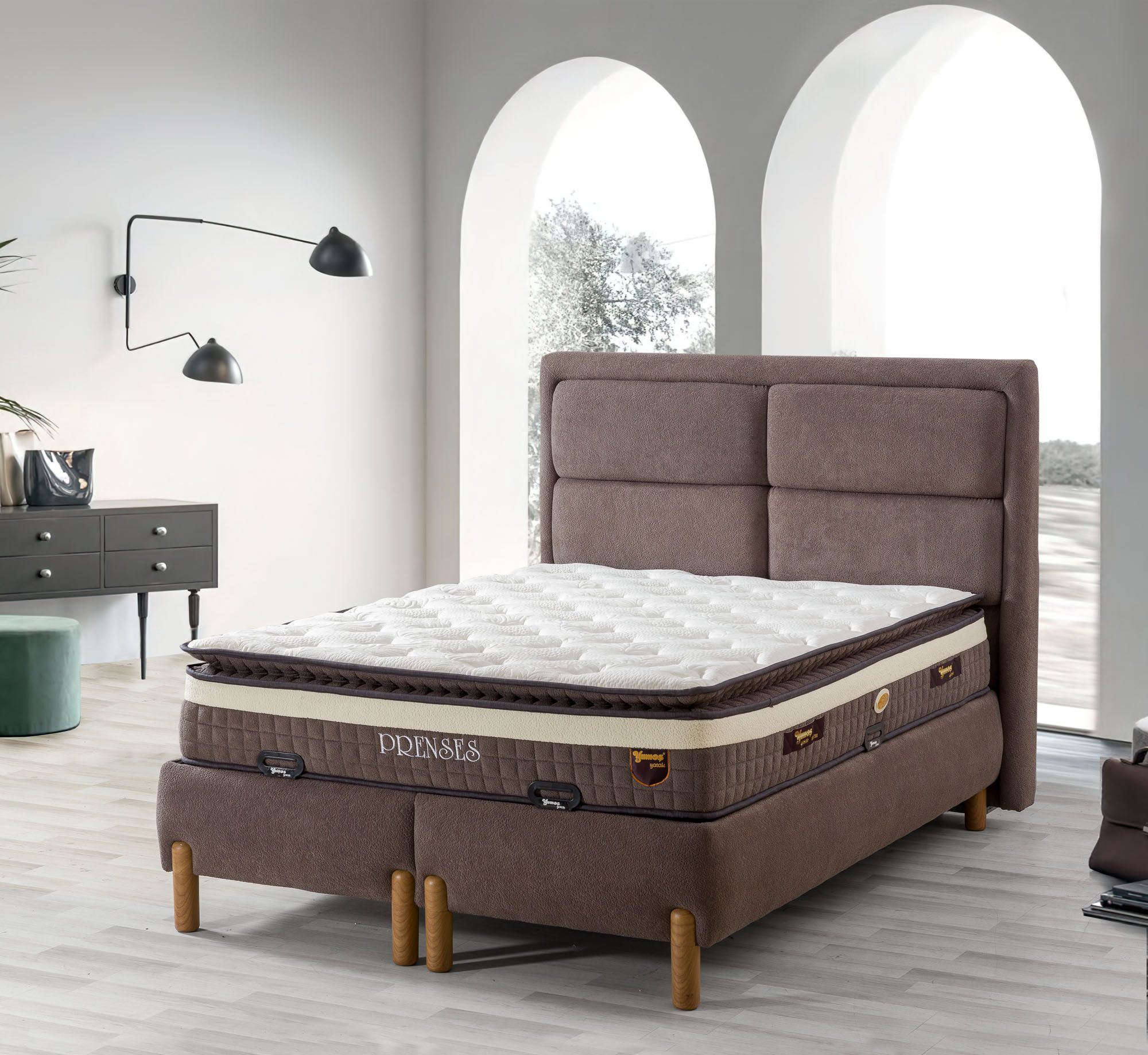 Prenses Yatak SetiPrenses Yatak / Prenses Baza / Frida BaşlıkRüyalarınızdaki Konforu Yatak Odanıza TaşıyınZarafet, Konfor ve Fonksiyonellik Bir Arada... Paket Yay Konforu Her bölgeye özel destek sunan paket yay teknolojisi, gece boyunca vücut formunuzu korur. Yumuşak dolgulu üst katmanıyla sizi sarar, uykuya geçişi kolaylaştırır. Sessiz ve sarsıntısız uyku Omurga dostu yapı Uzun ömürlü ve çökme karşıtı sistem Geniş Depolama, Güçlü Yapı Yüksek taşıma kapasiteli baza, hem dayanıklılığı hem de ekstra saklama alanıyla öne çıkar. Mekanizması sessiz ve kolay açılır sistemle donatılmıştır. Geniş iç hacim Kolay açılır kapanır sistem Sağlam iskelet ve şık görünüm Coco Kumaş & Bohem Stil Yüksek tasarımı ve doğal keten kumaş kaplaması, yatak odanıza ferah ve sofistike bir hava katar. Bohem tarzı yüksek ayaklarıyla zamansız bir şıklık sunar. Nefes alan kumaş yüzey* Modern-bohem çizgiler Yüksek ayaklar sayesinde temizlik kolaylığı Yatak odanızın ruhunu yansıtan, uykuya davet eden bir set. Konforun zarafetle buluştuğu bu özel tasarımı keşfedin.