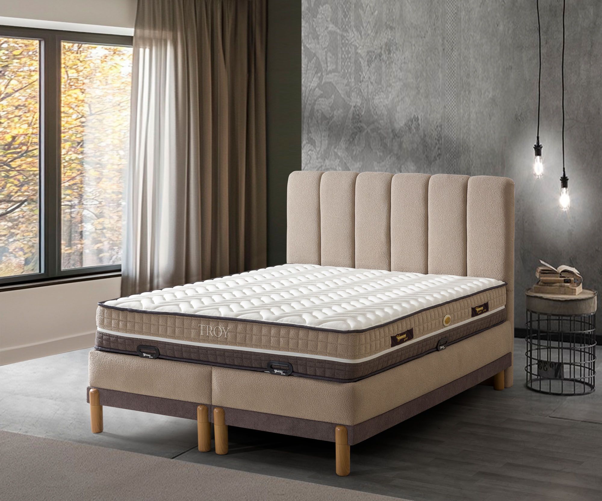 Troy Yatak Seti, uykunuzu en üst düzeye çıkarmak ve yatak odanıza eksiksiz bir uyum katmak üzere tasarlanmıştır. Bu set, Troy Yatak, Hugo Baza ve Hugo Başlık'ın birleşimiyle hem estetik hem de fonksiyonel bir mükemmellik sunar.